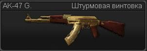 Изменение характеристик: Урон - 35 (33) Обойма - 45/380 (30/240) Особенность: спаренный магазин; добавляет уверенности в своих силах (кажется, что с золотым калашом порвешь всех)